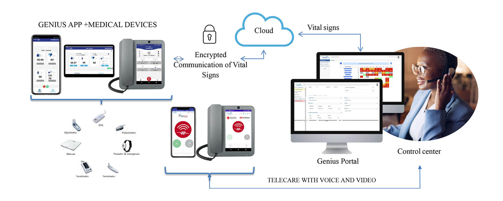 Robust and proven RPM technology, capturing the patient's vital signs from CE/FDA peripherals.